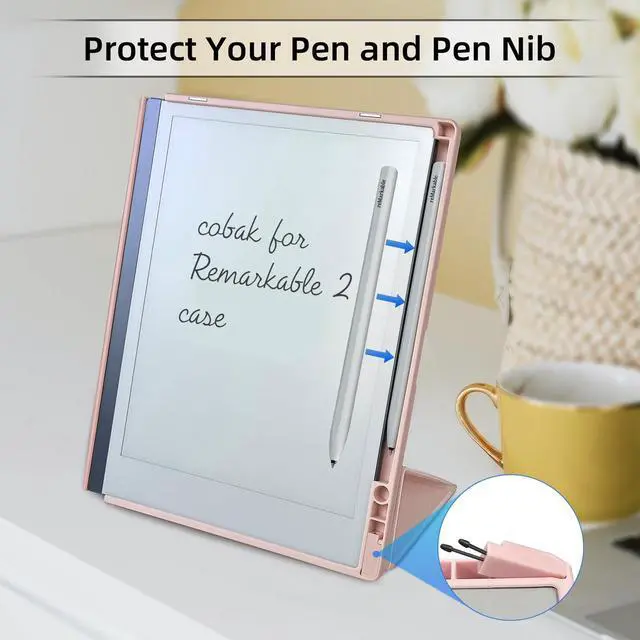 [(Pen Holder Design)] The unique design of the Remarkable 2 cover includes a pen holder that keeps your pen and nib safe from damage. It also has a convenient storage compartment for extra pen tips, eliminating the worry of misplacing them