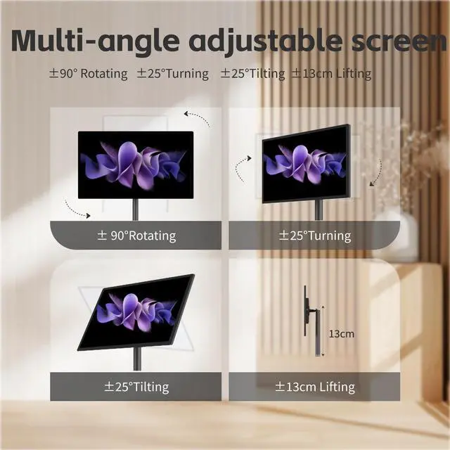 Flexibly Adjust Screen Angle: This rolling smart tv uses 360deg smooth rotation and tilt function, can effortl
