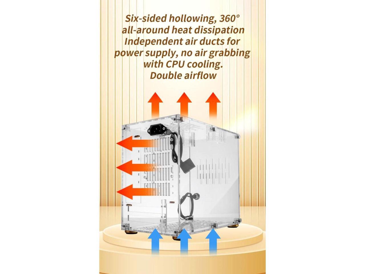 Mini ITX PC Case, 360 Degree Open Type Desktop Gaming Computer Chasssis Acrylic Transparent Computer Hosting Case for Gaming Desktop