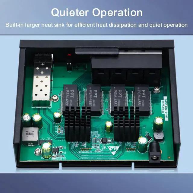 Quieter Operation: The SODOLA 8-port 2.5G switch features a rugged metal casing for superior durability and built-in larger heat sink for efficient heat dissipation and quiet operation.