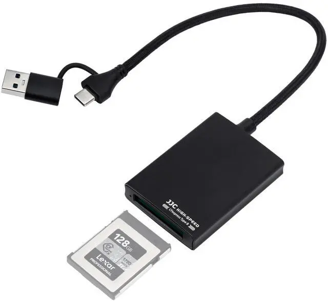 Designed for CFexpress Type B card ^^ Features USB 3.2 Gen2 and USB-C ports, maximum transfer speed up to 10Gbps. Compatible with smartphone, computer, laptop, tablet, iPad and more devices with USB or USB-C port ^^ Compatible with Android, Windows XP/Vista/7/8/ 8.1 /10/11, Mac OS (including systems with M1 and M2 CPUs), iOS systems and iPhone 15 series phones ^^ Plug and play, no additional drive required. Allows to read and write simultaneously, supports card capacity up to 2 TB ^^ The housing is made of durable aluminum alloy, better for heat dissipation during using