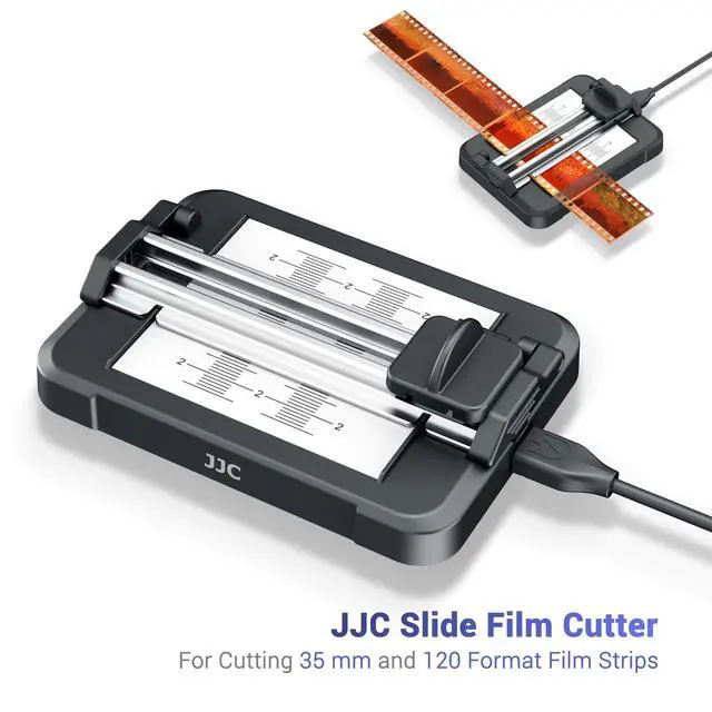 Slide Film Cutter: Are you still struggling to cut the films? JJC Slide Film Cutter provides a perfect solution to get a clean and straight cut edge for your 35mm, 6cm x 4.5 cm, 6cm x 6cm, 6cm x 7cm and all 120 format film strips. Its a good partner for preparing film for scanning and for storing in archival pages.