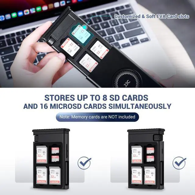 Not Only A Card Reader: The multifunctional SD card reader case integrates a fast data reading function and a memory card organizer. AS a card case, it can hold up to 8 SD cards and 16 Micro SD cards. Inside it consists of customized EVA foam where memory cards can be safely kept in specific compartments and reduce shock.