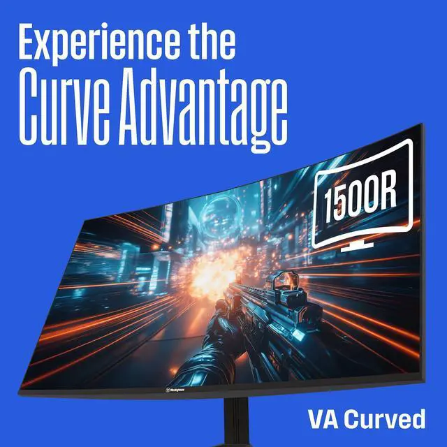 Westinghouse 32 Inch Curved Full HD Gaming Monitor, 165Hz, AMD FreeSync Support, Low Motion Blur, 1500R Curve, 1920 x 1080, for PC Games with Built in Speakers, DisplayPort, 2X HDMI