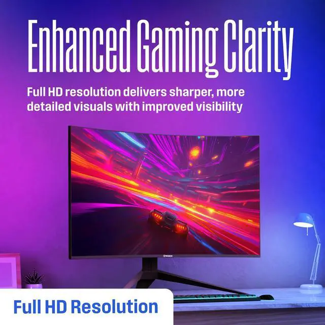 FULL HD: Our 32-inch curved monitor comes with a 1920 x 1080 resolution that delivers a wider field of view and is equipped with a VA panel that boasts a high contrast ratio and deeper blacks.