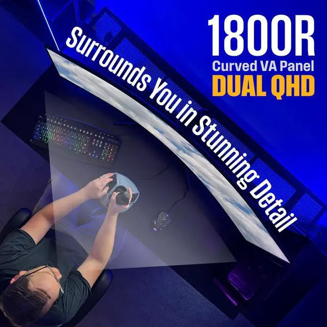 CURVED SCREEN: The ultrawide monitor is designed with a 1800R curved screen that wraps around your field of view, enhancing gaming and movie-watching experience by reducing glare and edge distortion for more comfortable viewing.