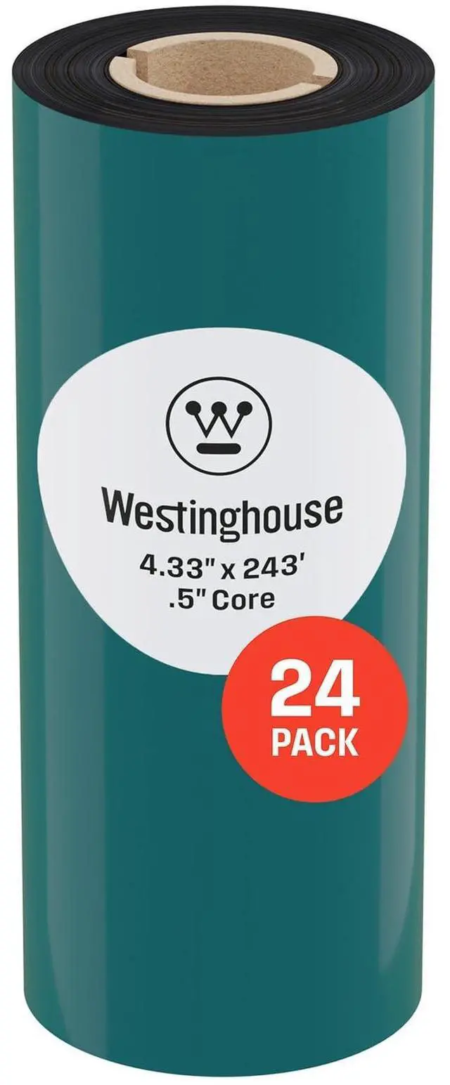 Westinghouse Thermal Transfer Ribbon, 4.33" x 243', 0.5" Core, Compatible with Zebra GC420t, GK420t, GX420t, Premium Wax Resin Enhanced Ink Side Out Wax Ribbon for Thermal Printers, Black, 24 Rolls