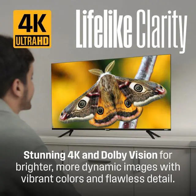 Experience Every Detail in Stunning 4K Enjoy a cinematic viewing experience with 4x the resolution of traditional HD TVs. The 58-inch 4K UHD display delivers crystal-clear visuals and razor-sharp detail, perfect for movies, sports, and gaming. With Dolby Vision and HDR+ technologies, you get enhanced contrast, brilliant brightness, and deeper color accuracybringing every scene to life with vibrant, lifelike clarity. ^^ Endless entertainment - Stream easy with instant access to top apps like Netflix, Prime Video, Disney+, Apple TV+, Hulu, HBO MAX, ESPN+, YouTube TV, and more all in one place.