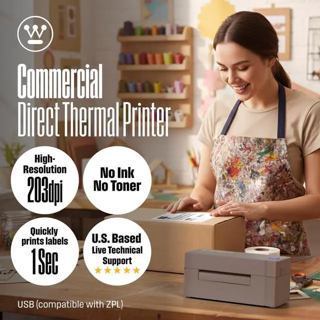^^ DIRECT THERMAL PRINTER: Applies heat directly onto the label material, eliminating the need for ink ribbons and toners. Perform print test during setup to ensure print visibility.