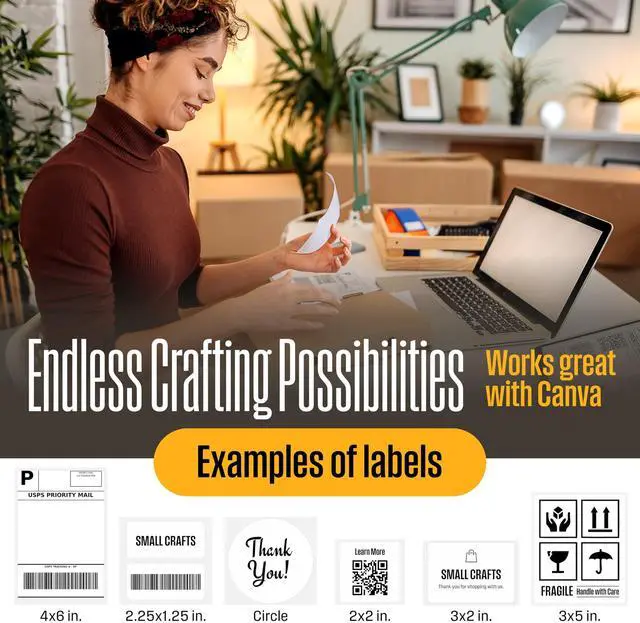 ^^ 4x6 THERMAL LABEL: Supports media widths of 1.57 to 4.25 and paper thickness of 0.06 mm to 0.25 mm, with a max print length of 70. For printing shipping labels, barcodes, QR codes, labels for warehouse or bin organization, product IDs, and more.