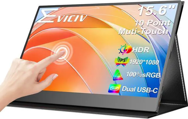 EVICIV Portable Monitor Touchscreen 15.6 FHD 1080P IPS 10-Point Touch Screen Monitor with Stand Cover & Speakers, HDMI USB C Eye-Care Travel External Monitor for Laptop Computer PC Phone Switch