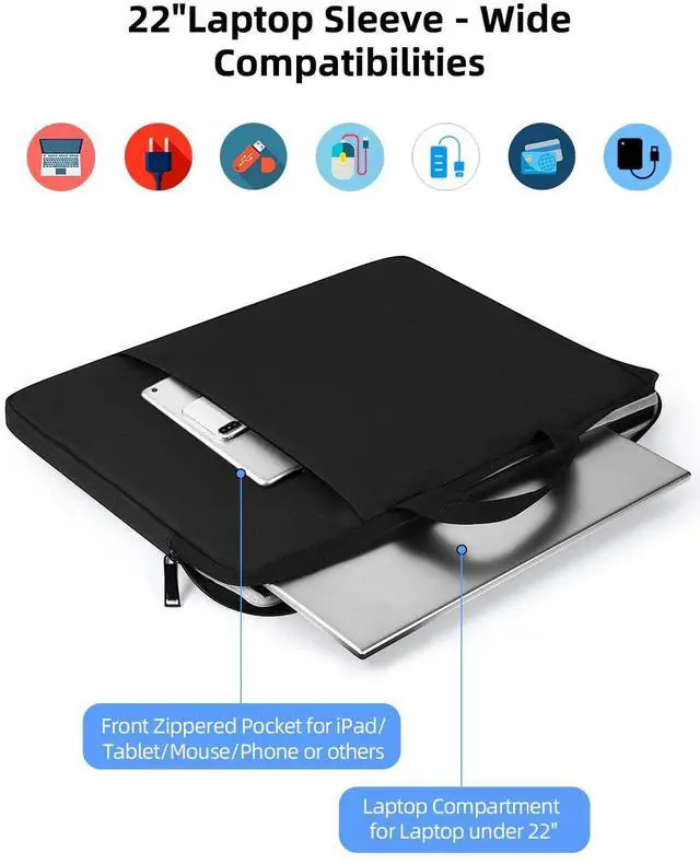 EVICIV Laptop Sleeve Case 22 inch, 360° Protective Laptop Carrying Case Computer Cover Bag with Handle for 20-22 inch Desktop, Portable Monitor, Notebook, Large Travel Briefcase Handbags (Black)