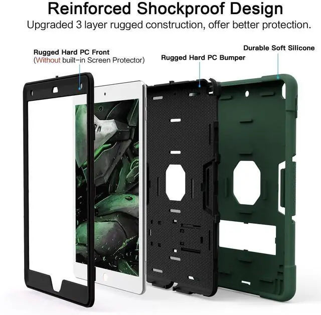 Shockproof Rugged Design: This case for iPad 9th generation kids made of durable hard PC+silicone, 3-layer full body protection structure, provide a perfect protection & anti-scratch. NOTE: This ipad 10.2 inch case WITHOUT built-in screen protector