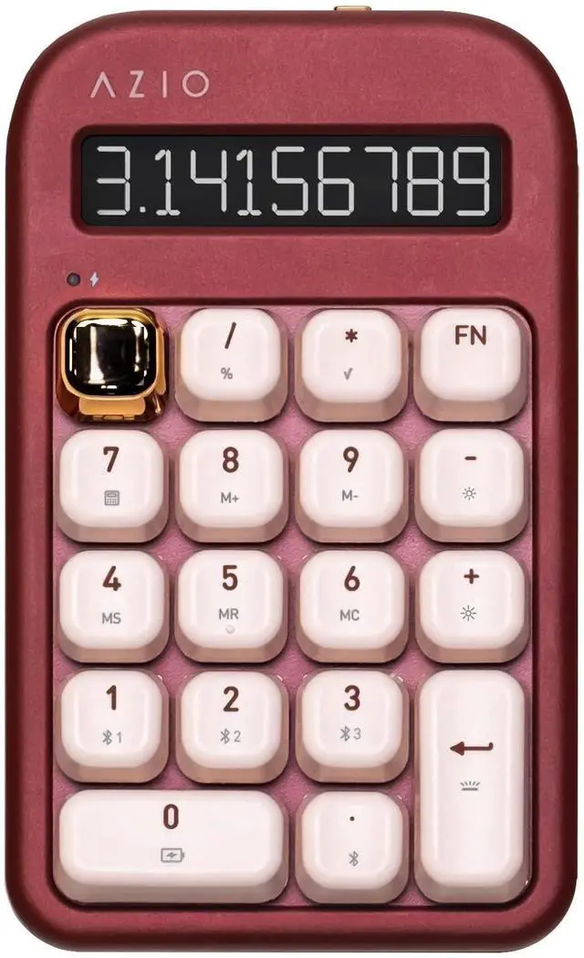 AZIO IZO Wireless Mechanical Calculator & Number Pad (Red/Gold) - Bluetooth 5.0 & USB, Gateron-Blue Mechanical Switch, 9 Backlight Modes, Rechargeable, PC & Mac Compatible, Baroque Rose (IN106)