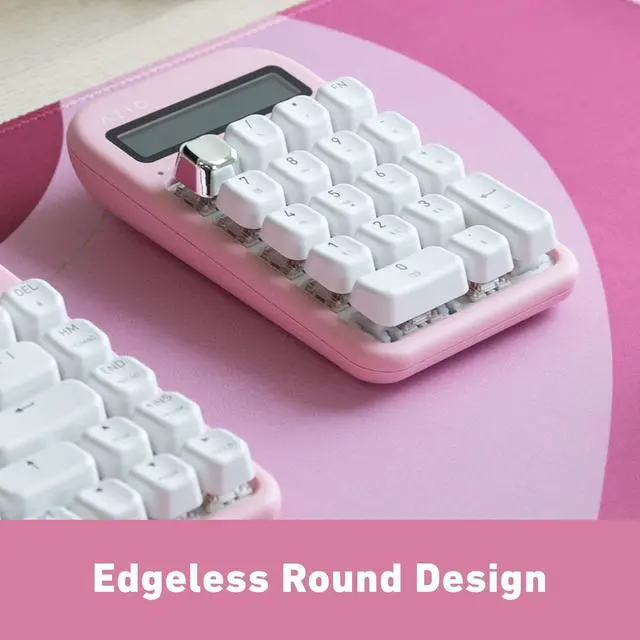 • Premium wireless mechanical calculator and number pad in a sleek pink and silver design