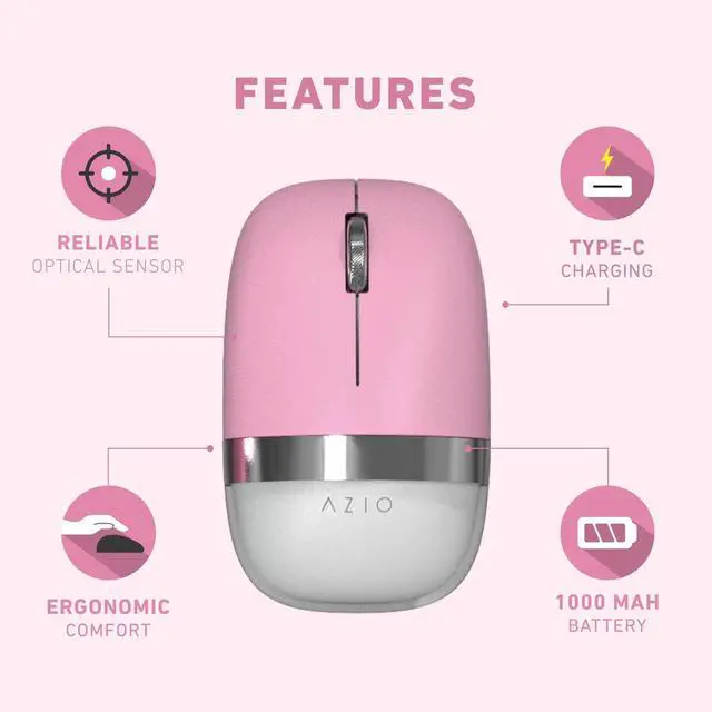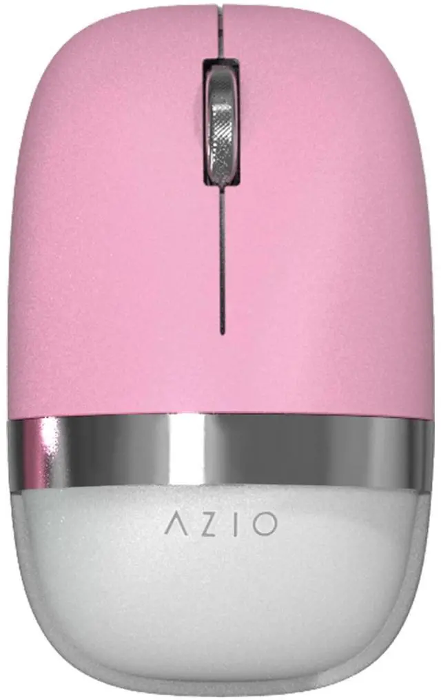 AZIO IZO Wireless Optical Mouse - Bluetooth 3.0 & 5.0 / 2.4G RF-USB, Ambidextrous Design, PixArt PAW3212 Sensor, 1000/1600/2400 DPI, Rechargeable, Pink and Silver - PC & Mac Compatible, Pink Blossom (IM408)