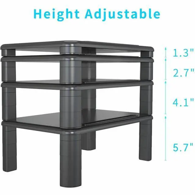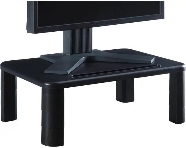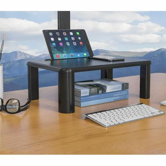 Monitor riser features a height-adjustable design to keep your monitor positioned at a comfortable level. A built-in slot on the surface offers easy storage for your pens, tablet or mobile device. Plus, its raised construction creates a handy storage space underneath the riser for space-saving use.