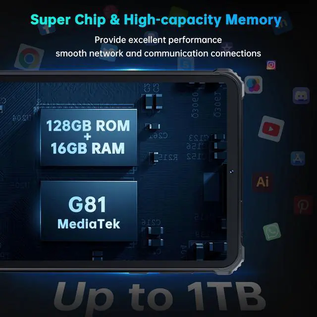 ROM: RT3 PRO is upgraded from RT3 to a large RAM for smoother and more efficient processing when running tasks and storing more information. OUKITEL RT3 Pro heavy duty tablet offers 16GB (4GB+12GB) RAM and 128GB ROM large storage space (1TB expandable). It allows you to use it without lagging and enjoy a more silky smooth operation for a better using experience.