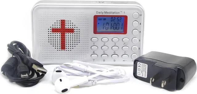 Daily Meditation Audio Bible Player is designed to empower Christians to live a blessed Psalm 1 Lifestyle. Its advanced numerical indexing system, built-in speaker and earphone, rechargeable battery will enable you to listen to God's words anywhere you go, keeping your mind focused on God's promises and wisdom all the time. Its specially designed one year bible plan will guide you to read, listen, pray and meditate the bible in a year, which will transform your life. This audio bible player is ideal for: 1) Anyone who wants to make good use of your time to focus on God's words all day long when you commute, cook, exercise, do house work, etc. 2) Anyone who finds it so inconvenient to carry a large case of CEV bible on CD around. 3) Anyone who wants to stay away from distractions and temptations of smart devices in order to have a quality time to focus on God's words. 4) Anyone who struggles with CEV audio bible mp3 download and setting up CEV audio bible mp3 file properties correctly in order to load into an mp3 player. 5) Anyone who likes Contemporary English Version bible. A dramatized CEV audio bible player will give you a completely new experience with bible reading and study. 6) Old parents. Ideal Mother Day, Father Day, birthday and holiday gift. We also have KJV, NKJV, ESV, NIV, NLT, NASB, AMP, and NRSV audio bible players available.