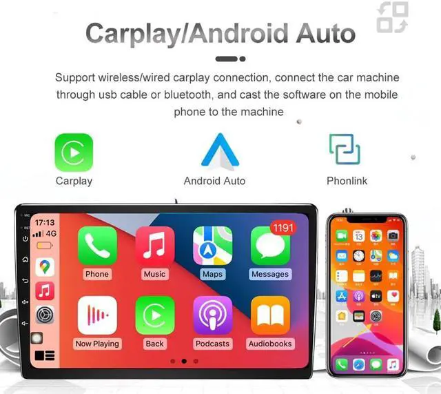 3.[(Built-in Carplay & Android Auto)] Wireless carplay, no need to connect USB cable. In addition, you can use the functions that have Android Auto in the car radio by the connected USB cable: / Maps / Music / Calls. You can also sync data from your mobile apps: Maps, Spotify, iTunes, etc. and use them online!