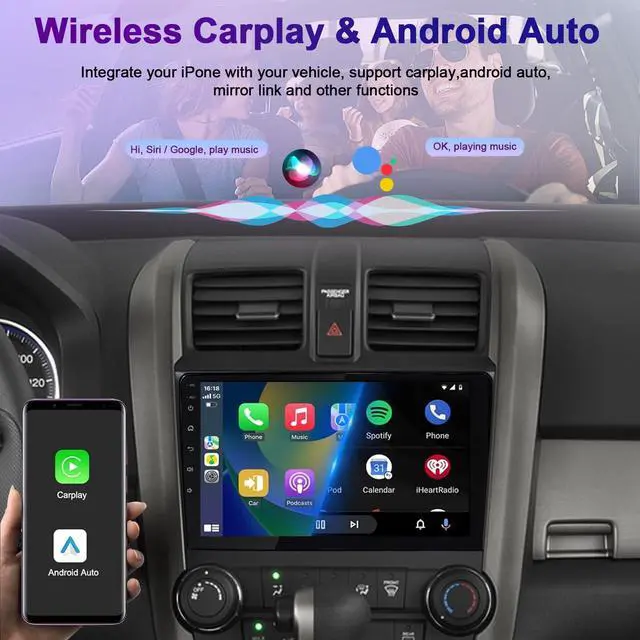 [(Carplay & Android Auto)] This car stereo for Honda CRV 2007-2011 compatible with wire/wireless apple carplay and android auto,through connect your IOS/Android phone to access map navigation, make phone call, play music, send and receive messages etc.