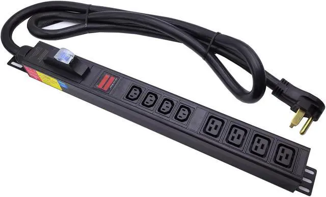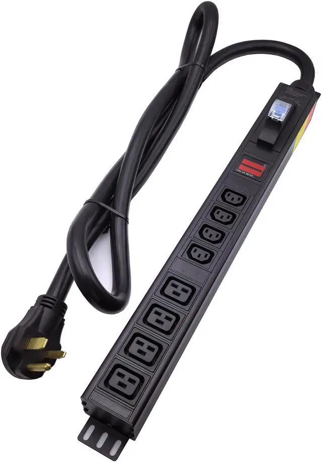 Data Center 240V 50Amp Server Cabinet L6-50P 8 Outlets IEC 4 bit C13+4 bit C19 PDU Meter PDU Aluminum Alloy Rack Type Power Socket (C13-08-D)