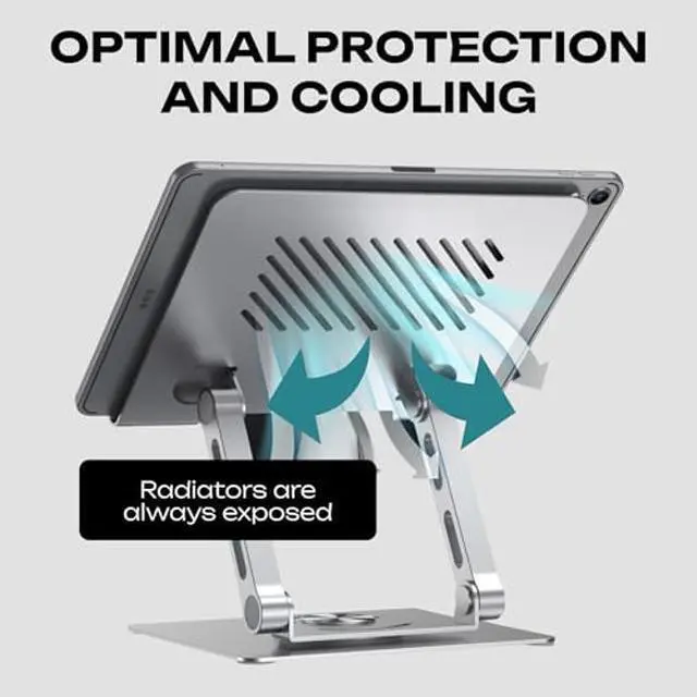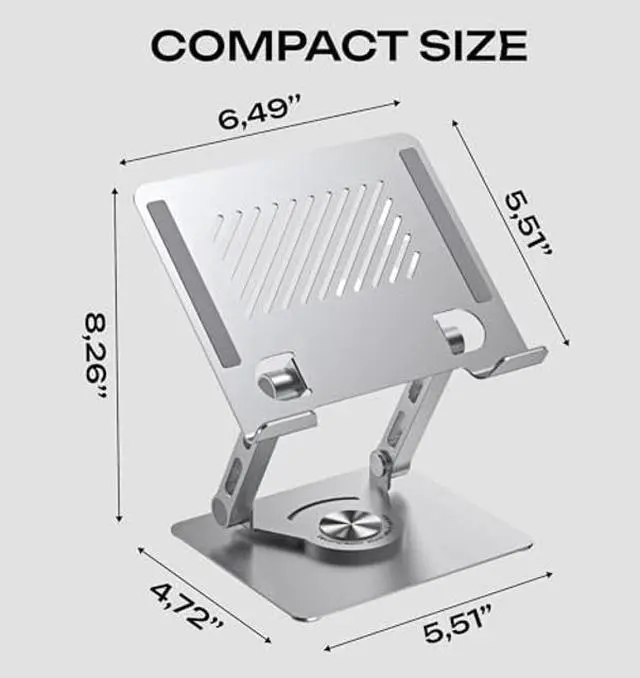 Key Features: 360deg Rotating Base - Effortlessly switch between angles and orientations. Ergonomic Design - Promotes better posture by reducing strain on the neck and back. Universal Compatibility - Fits laptops and tablets from 10" to 17" inches. Durable & Sturdy Construction - Made from high-quality materials for long-lasting use. Foldable & Portable - Compact and lightweight for easy storage and travel. Perfect for professionals, students, and tech enthusiasts, this Laptop & Tablet Stand is an essential accessory for an organized and comfortable workspace. Elevate your productivity and comfort today!
