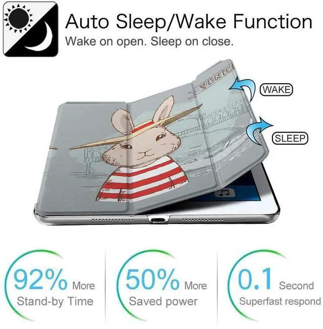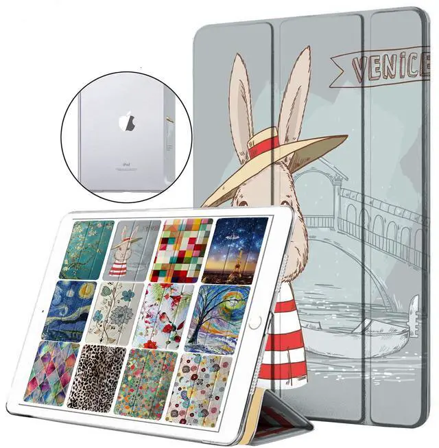 DuraSafe Cases for iPad PRO 12.9 2 Gen 2017 [iPad 12.9 Inch 2nd ] A1670 A1671 Trifold Printed Hard Smart PC Transparent Back Cover - Rabbit Cartoon Print