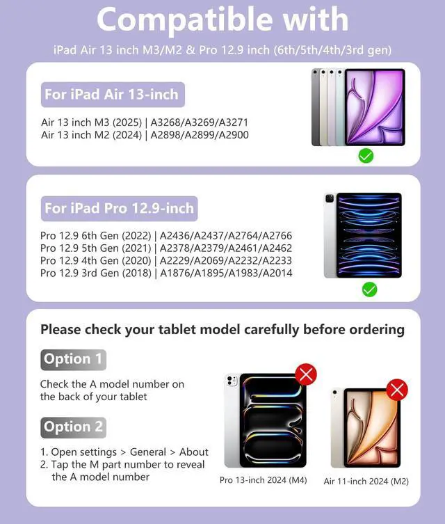 [(Compatibility)] Harvopu Keyboard Case specially for iPad Air 13-inch M3 2025 (A3268/A3269/A3271), for iPad Air 13-inch M2 2024 (A2898/A2899/A2900), for iPad Pro 12.9 inch 6th Gen 2022 (A2436/A2437/A2764/A2766), for Pro 12.9 5th Generation 2021 (A2378/A2379/A2461/A2462), for Pro 12.9 4th Gen 2020 (A2229/A2069/A2232/A2233), for Pro 12.9 inch 3rd Gen 2018 (A1876/A1895/A1983/A2014). please find the No. "AXXXX" before order (Open settings > General > About, Tap the M part reveal the A model number)