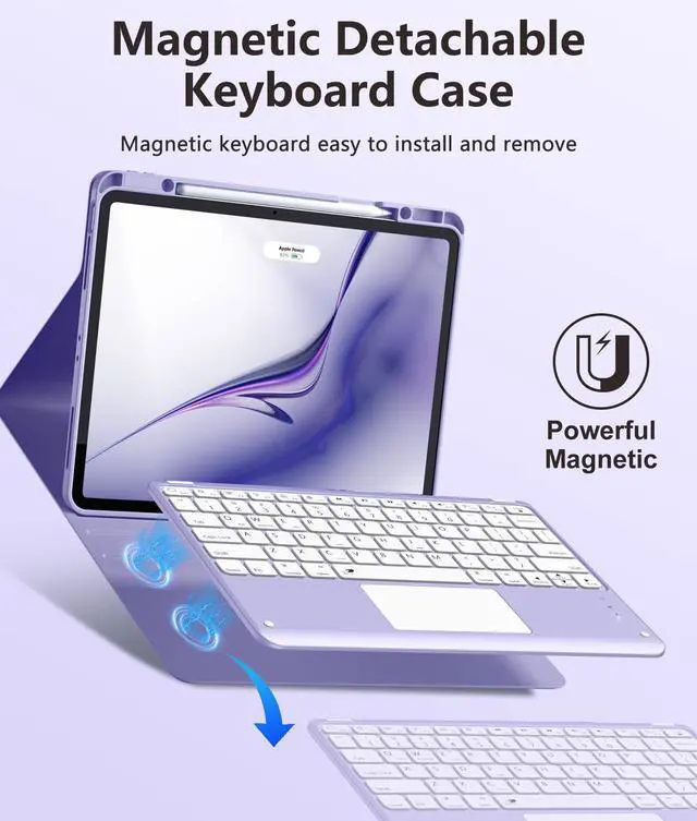 Harvopu for iPad Air 13 Inch & Pro 12.9 Case with Keyboard - Multi-Touch Trackpad, 7 Colors Backlit, Detachable Folio Keyboard Cover for iPad Pro 12.9 (6th, 5th, 4th, 3rd gen), Air 13 M3/M2 (Purple)