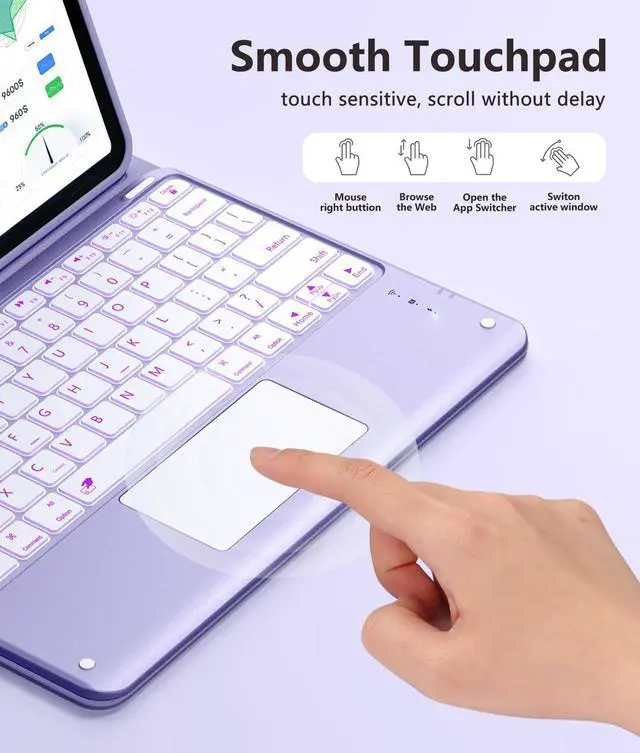 [(Quick and Easy Navigation)] Enhance your productivity with the high-sensitive multi-touch touchpad of the Harvopu iPad air 13 inch case keyboard. it's well-made, great for fast typing, and navigate, browse, and control your tablet in a whole new way, making it easier to perform tasks without touching the screen, like editing documents, browsing the web, and managing applications smoother and more efficient