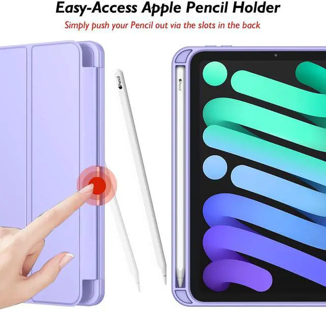iMieet iPad Mini 7 Case 2024 (A17 Pro), iPad Mini 6 Case (8.3-Inch,2021 Model), iPad Mini 7th/6th Generation Case with Pencil Holder, Trifold Stand Smart Case with Soft TPU Back,Light Purple