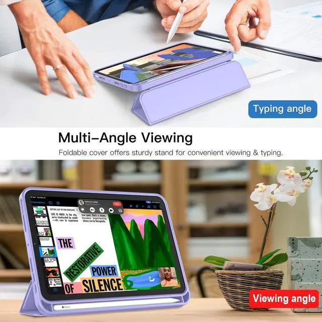 iMieet iPad Mini 7 Case 2024 (A17 Pro), iPad Mini 6 Case ( 8.3 -Inch, 2021 Model), iPad Mini 7th/6th Generation Case with Pencil Holder, Trifold Stand Smart Case with Soft TPU Back, Light Purple