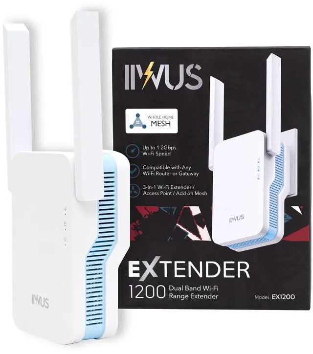 IIWUS AC1200 WiFi Extender, Mesh WiFi System, Powerful Mesh WiFi Extender with Ethernet Port, Dual Band Range Extension, Wi-Fi Extender + Access Point