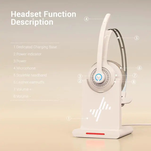 [Noise Cancelling Headset]: EH06 computer wireless headset with microphone Qualcomm chip QCC3024 is equipped with AI environment noise reduction microphone, which can automatically identify the surrounding noise and perform noise reduction processing, so as to provide a clearer call experience, suitable for field services, retail, and warehouse workers etc. calling professions. Compatible devices: office computers, laptops, cell phones and other devices with Bluetooth function.