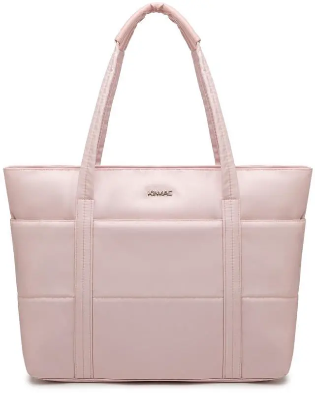 Kinmac Computer Tote Bag for Women, Large Capacity Laptop Tote Handbag for Work Office Travel (Pink Grid)