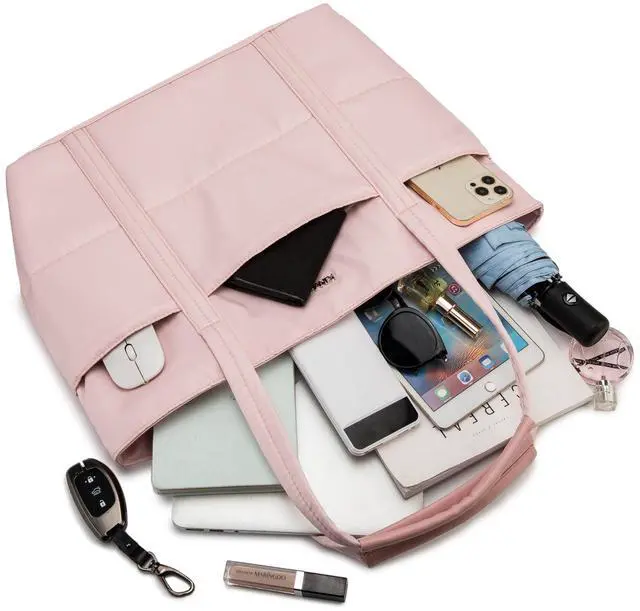 Large Capacity: The laptop tote has a capacity of 28L, which can accommodate laptops up to 15.6 inch. It also has multiple compartments and pockets, providing ample space for your phone, wallet, keys, notebooks, books, water bottles, power bank, etc.
