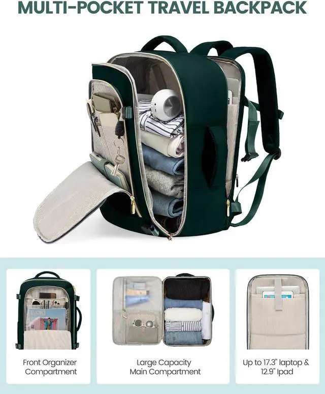 LOVEVOOK 40L Travel Backpack for Women, Carry On Flight Approved, Large Personal Item Bag, Fits 17 Inch Laptop, TSA Approved Luggage with 3 Packing Cubes, Waterproof Weekender Gym Backpack