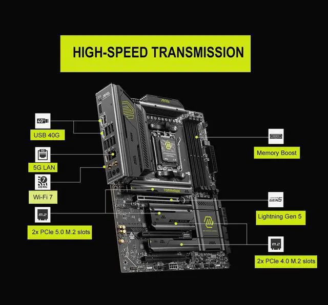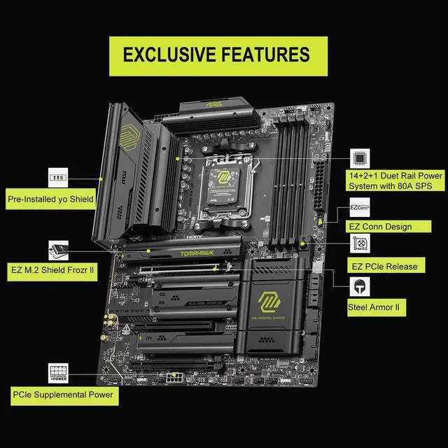 MSI MAG X870E Tomahawk WiFi Motherboard, ATX Form Factor, Supports Dual-Channel DDR5 up to 256GB, PCIe 5.0 Supports, 2x PCIe 5.0 x4 M.2 Slot, 2x PCIe 4.0 x4 M.2 Slot, 4x SATA 6GB/s, 2x USB 40Gbps Type C, Wi-Fi 7, Bluetooth 5.4, Windows 11 64-bit Support, Supports AMD Ryzen 9000/ 8000/ 7000 Series Desktop Processors
