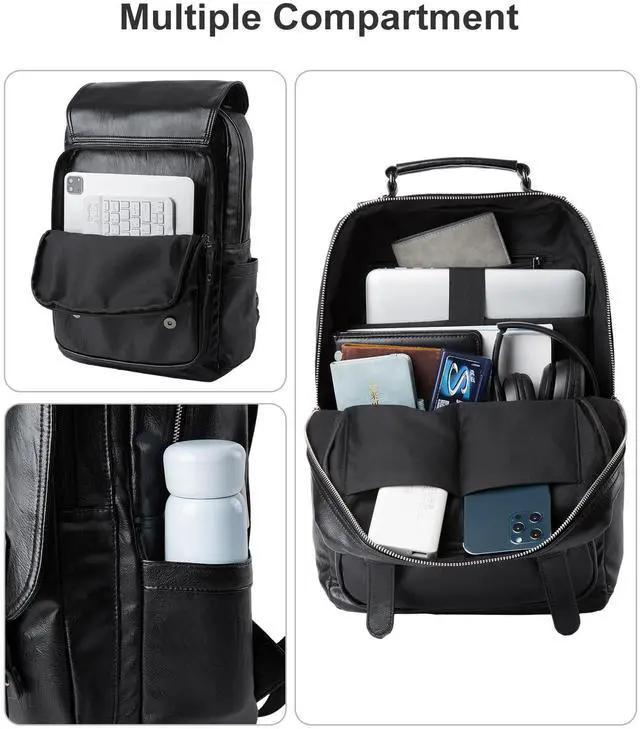 PU MATERIAL: Backpack for men made of high-quality faux leather, which is waterproof and easy clean. Reinforced stitching make the leather backpack durable and wearing-resisting. Backpack purse match with soft fabric lining and padded back, which is lightweight and comfortable. This Casual leather bookbag is a ideal bag for college, work and travel