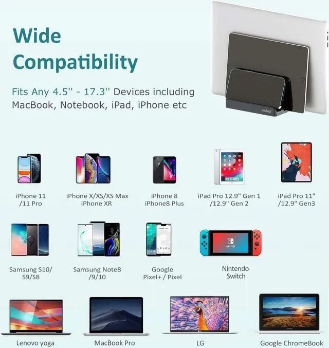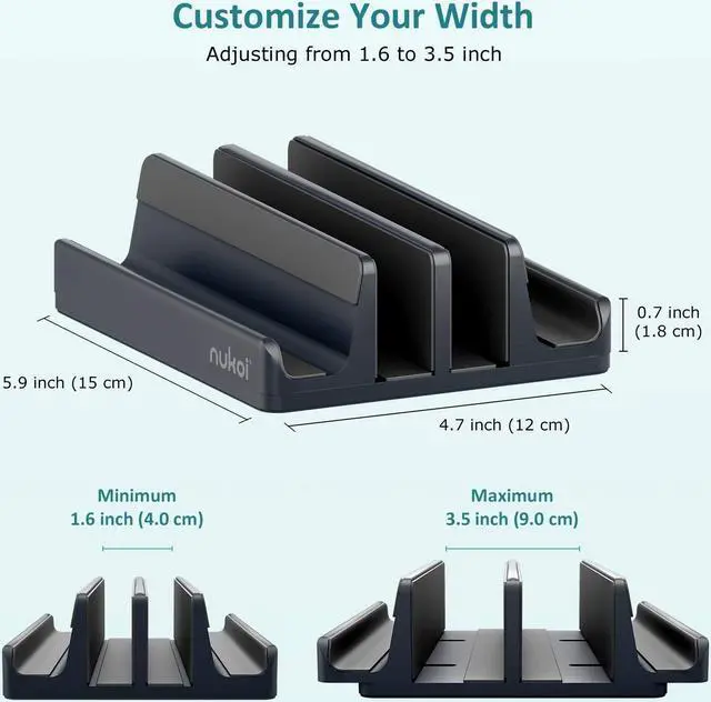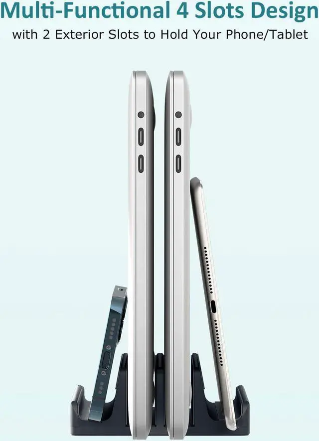 You Do You - Easy, Adjustable, Smart Vertical Laptop Holder Configurations: Create Your favorite combination - try adding 2 Laptops, 2 Tablets/iphone devices to save 4 to 6 feet; or 1 Laptop + large iPad + cell phone/external hard drive + bluetooth keyboard and pens to declutter your whole desk.