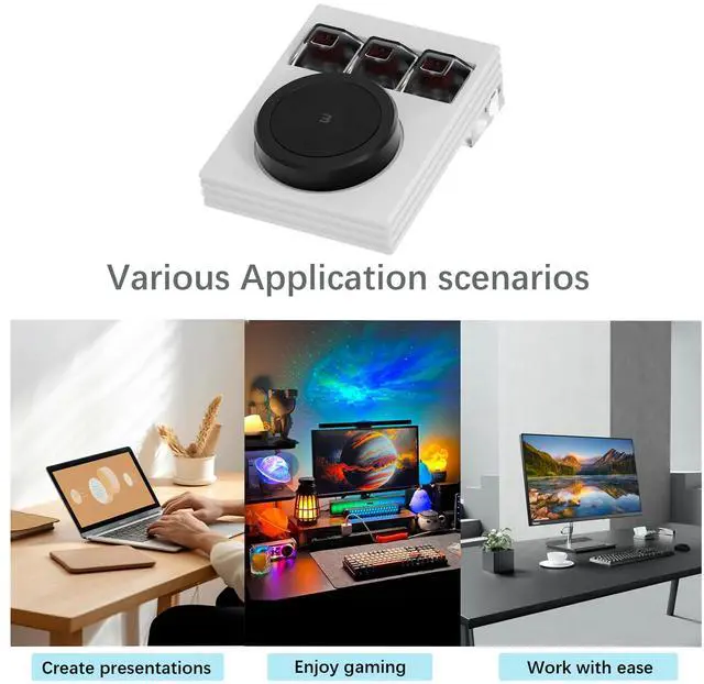 [Programmable Macro Keyboard]: This mini 3-key keyboard is a macro keyboard, equivalent to a standard USB keyboard or mouse. It has a programmable design and a digital display screen, capable of saving 6 layers of custom configurations.