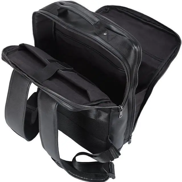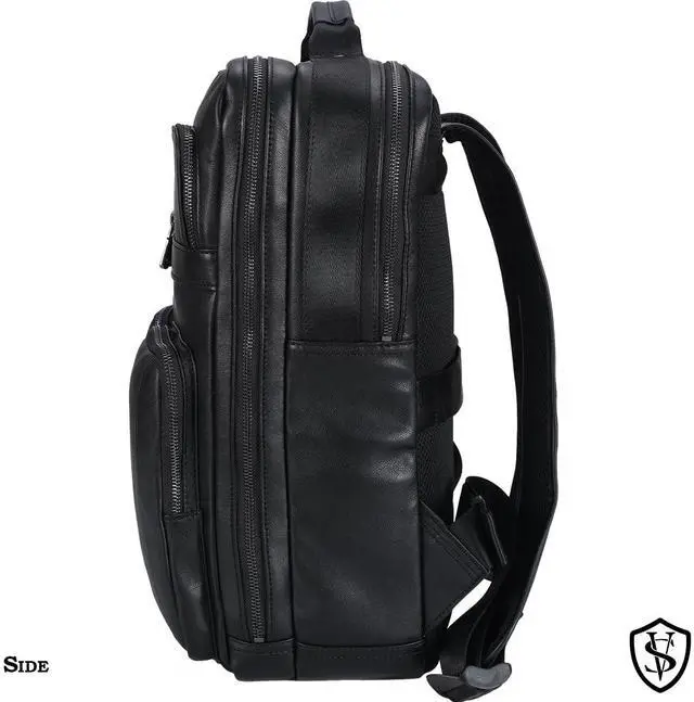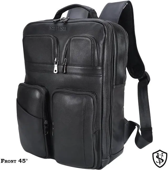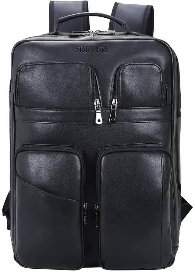 STAR VISTA Angelo 17.3" Premium Calfskin Leather Laptop Backpack for Men, Multi Pockets, Business Travel Bag, Casual Outdoor Rucksack, YKK Zippers, Black
