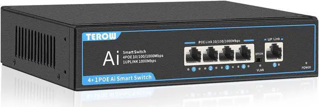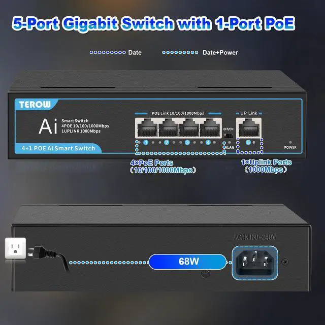 [Ultra-Fast 5 PortS Gigabit POE Ethernet Switch]: Upgrade Internet Speed, Terow Gigabit Switch is Configured with 4 Gigabit RJ45 Ports and 1 Gigabit uplink Ports, Each Port Can up to 1,000Mbs if Network Supplies. Reduce Stuttering, Choose Terow Gigabit Poe Switch