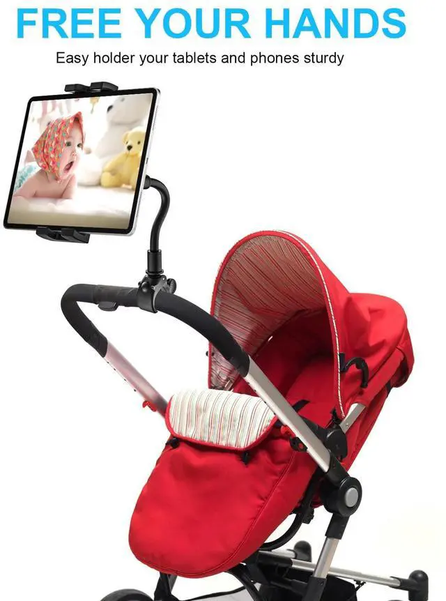 Gooseneck iPad Holder for Stroller, Adjustable Phone Tablet Holder Mount Pole Clamp for Baby Stroller, Shopping Cart, Indoor Cycling, Fit for iPad Pro/Mini/Air, iPhones, Galaxy Tab, 4.7-13" Devices