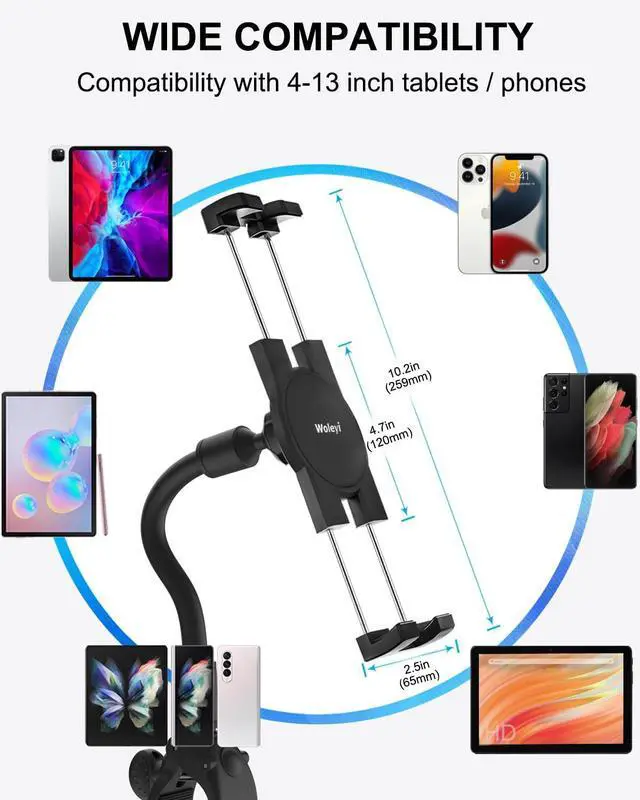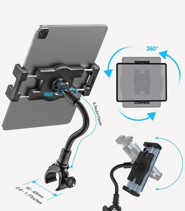 Gooseneck iPad Holder for Stroller, Adjustable Phone Tablet Holder Mount Pole Clamp for Baby Stroller, Shopping Cart, Indoor Cycling, Fit for iPad Pro/Mini/Air, iPhones, Galaxy Tab, 4.7 -13" Devices