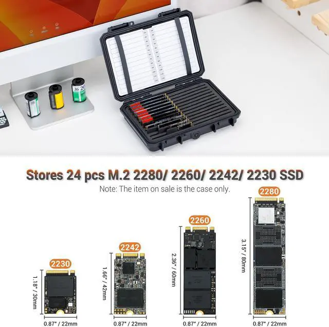 [(High Capacity)] This M.2 SSD Case can store 24 PCS M.2 2280 2260 2242 2240 2230 SSD, meet your daily M.2 NVMe SSD storage needs. (Package Not Include Any SSD Drives.)