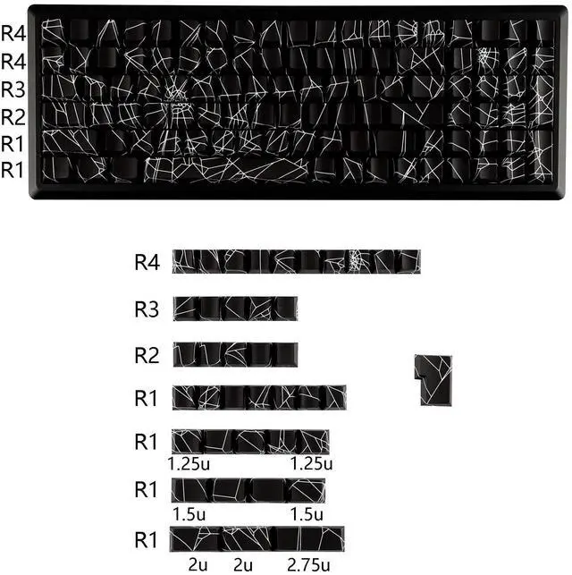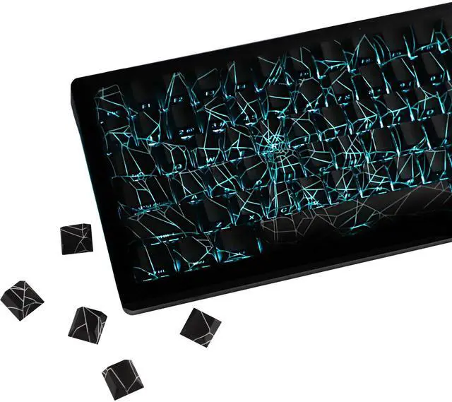 YMDK Spider Web 140 Keys Keycaps Side-lit Shine Through PBT+PC Cherry Profile Five-Sided Dye Sub Custom Keycap for MX Mechanical Keyboard 61/64/68/84/87/100/104/108 Layout