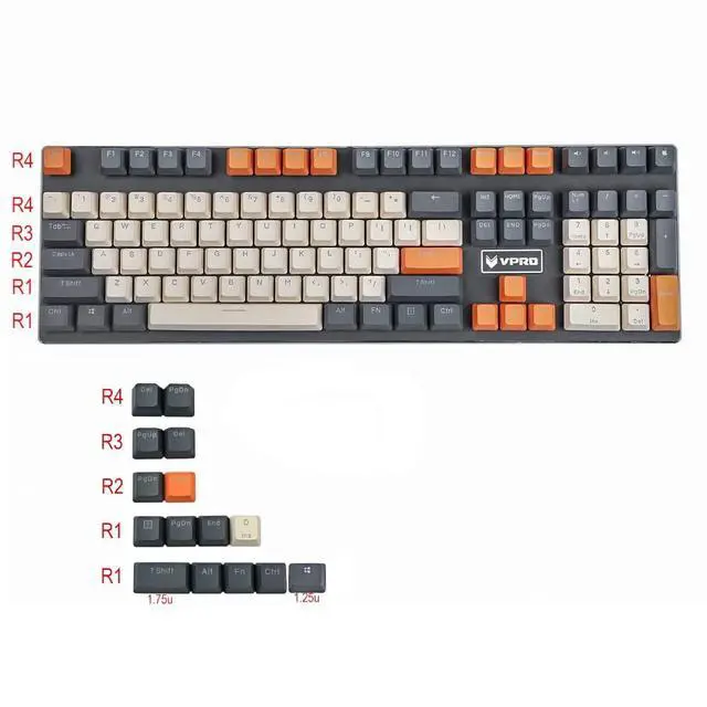 122 options: It can be used for most Standard 61 87 104 108 ANSI MX switches Mechanical keyboard whose bottom row is 6.25 u and 7x 1.25 u, namely space is 11.7 cm. It can be used for 68 84 layoutIt can be used for 96 layout, you just need to use the media keys to replace R4 End. IncompatiabilityIf the spacebar is 6u 6.5 u instead of 6.25 u, it can't be compatible. It's not compatible with Cosair Logitech. It's not compatible Some old Cherry keyboard whose Spacebar Capslock back hole is different, such as 1800After ServiceIf some keys missing or broken on the way, just leave us message, we will send you missing or broken ones soon. Don't worry about it and don't leave feedback immediately.