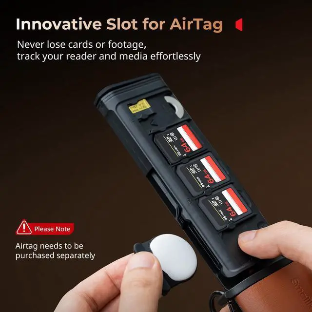 SmallRig Multifunctional Card Reader & Card Holder (CFexpress Type B), with Slot for AirTag, High-Speed Memory Card Reader for SD, SDXC, Micro SD, SDHC, 3 Card Read Simultaneously, 9 card slots - 4532